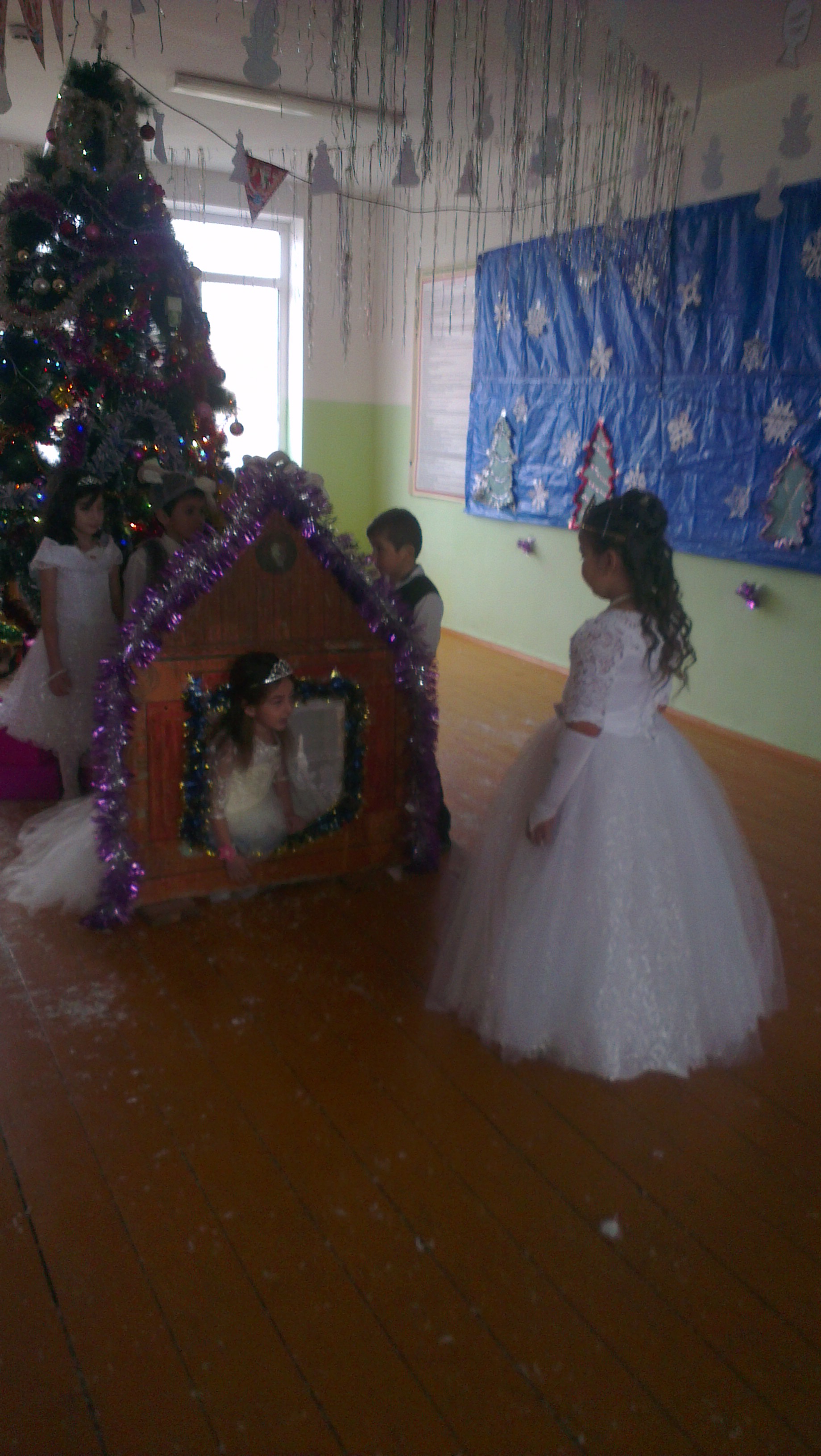 Затем был украшен актовый зал и установлена елка.