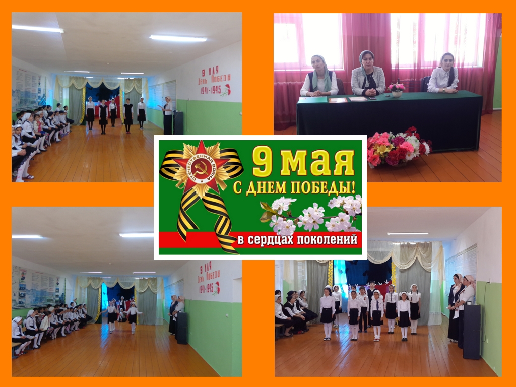 Во всех классах прошли классные часы,посвященные Дню Победы «Маленькие герои большой войны», «Наш край в годы ВОВ» и т.д., учащаяся 7 класса Бушуева Макка приняла участие в районном конкурсе чтецов, где заняла 1 место со стихотворением М.Джалиля «Варварство».